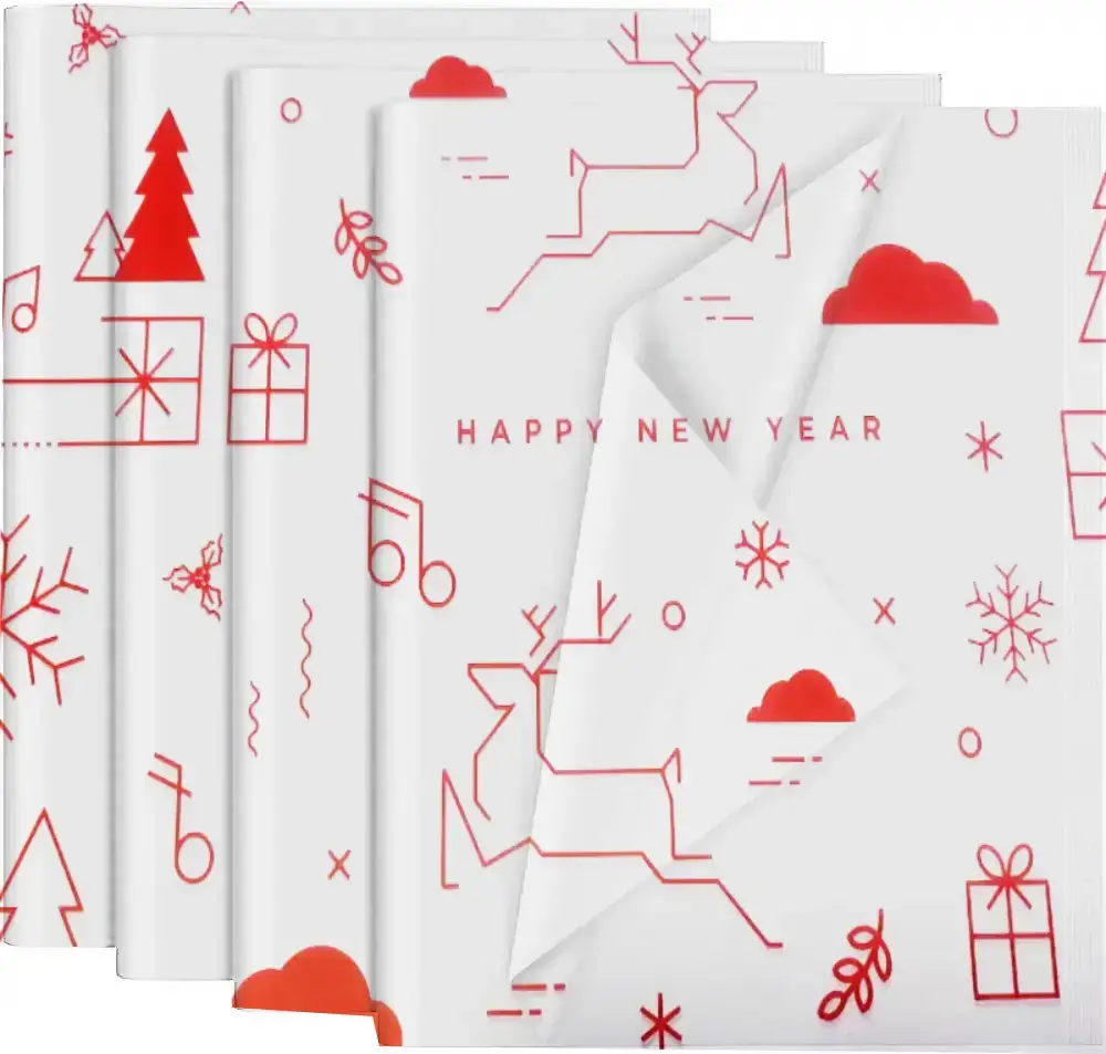 50×70 beyaz Happy New Year desenli pelur kağıt ile yılbaşı temalı paketlemelerinize şıklık katın. Dayanıklı yapısıyla hediyelik, giyim ve özel gün ürünleriniz için idealdir. Ankara’dan sipariş verebilirsiniz.